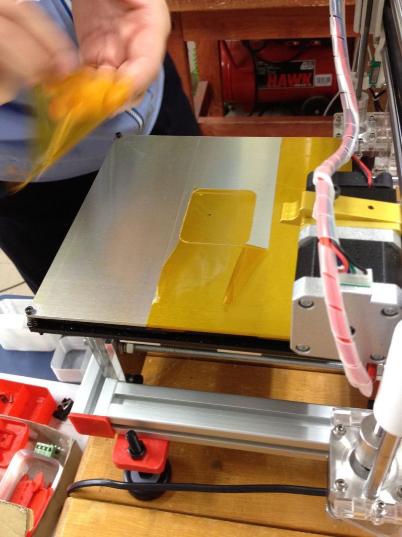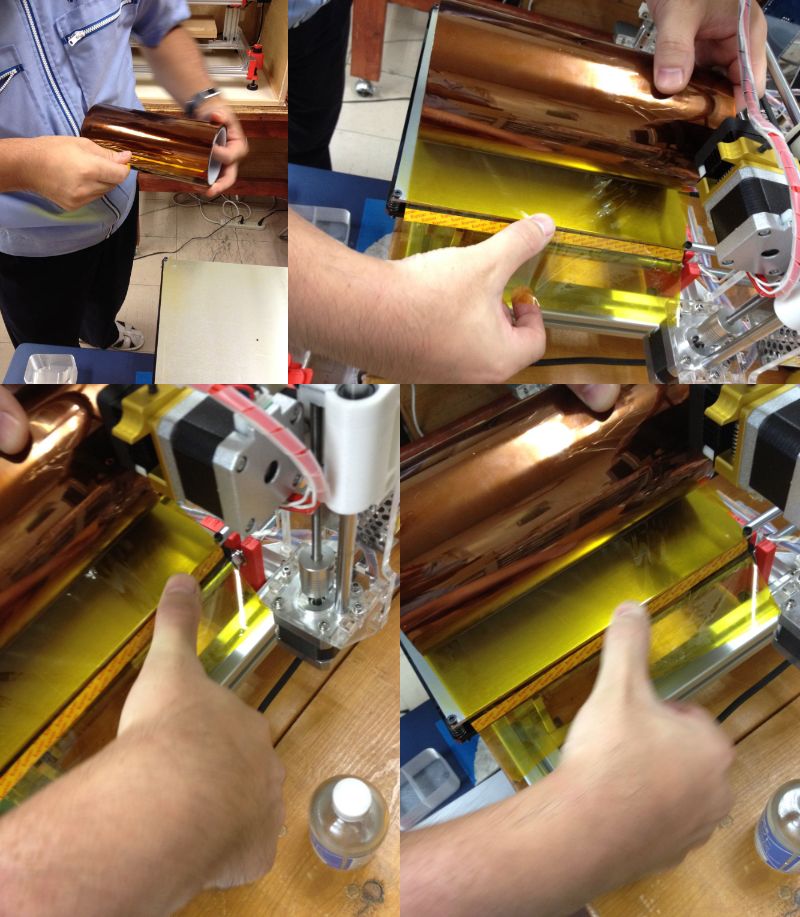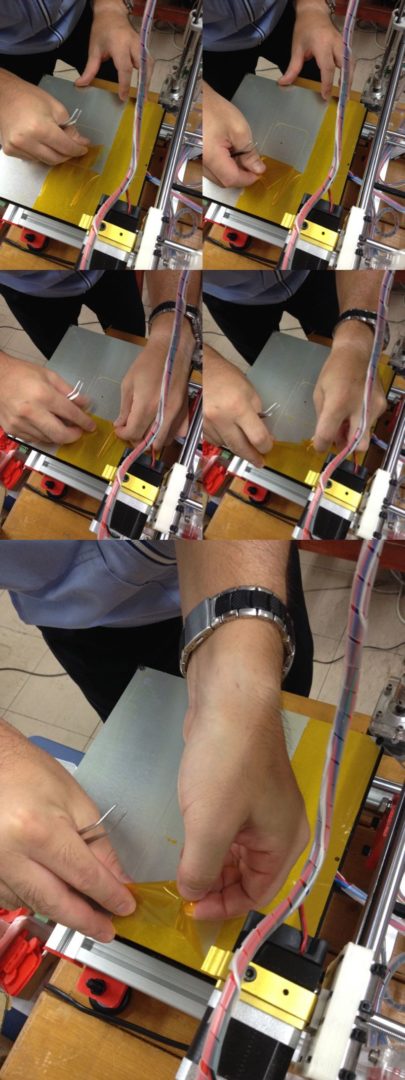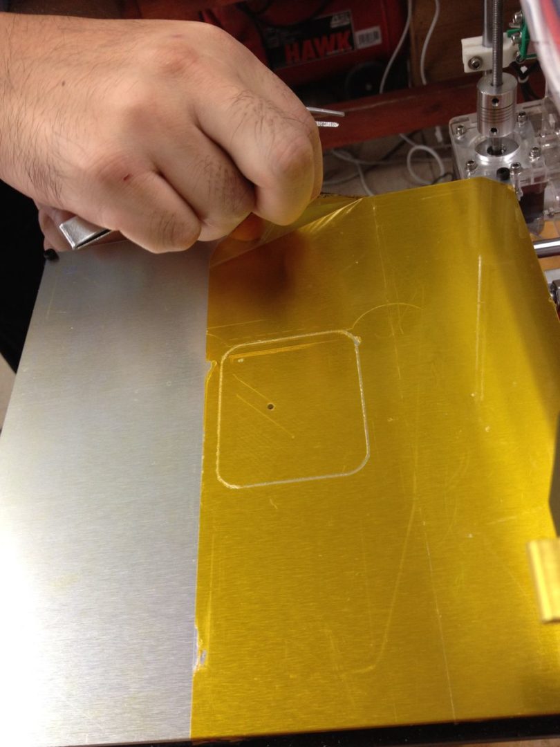 この3Dプリンタ導入時付属の耐熱テープを3分割して貼っていたので、まずひとつ目の耐熱テープ領域を剥離しました。