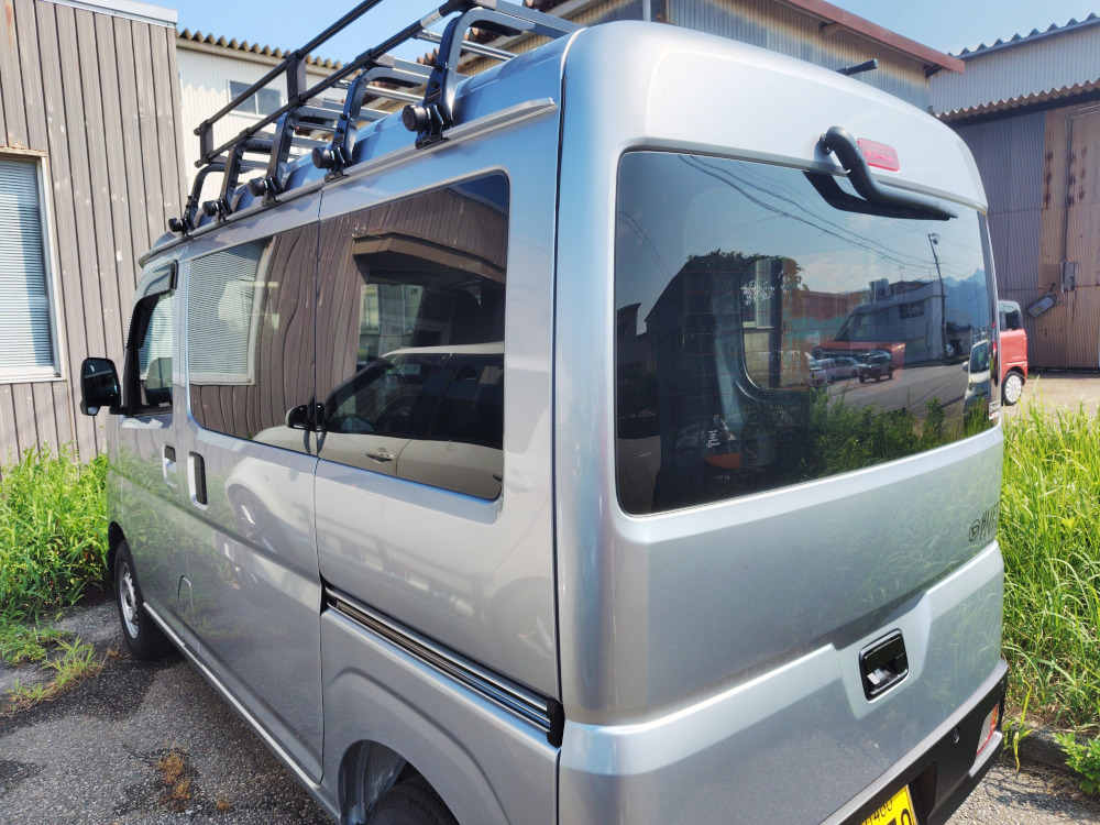 今回のハイゼットはルーフキャリアやカーナビ、バックビューモニターにドライブレコーダー付きです。