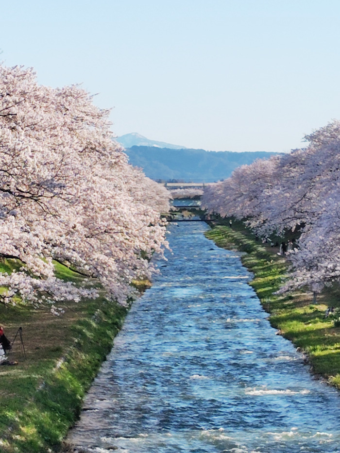 天気が良く、山もくっきり見えて桜は満開で見ごたえがありました。